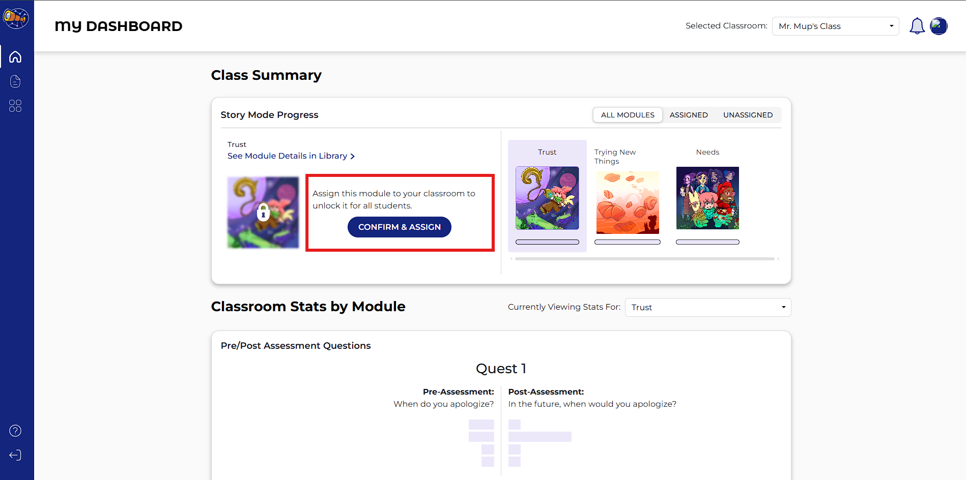 - Choose the module you would like to assign. Click "Confirm and Assign."